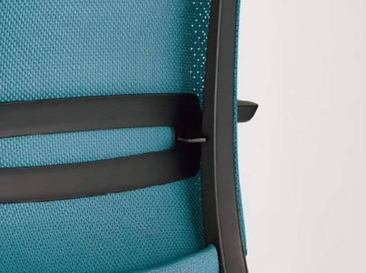 腰部をしっかりと支えるランバーサポート。体型に合わせて60mmの範囲で上下調整が行えます。
