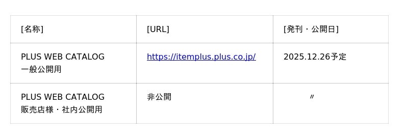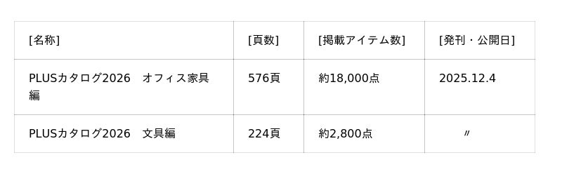 プラス株式会社(東京都港区 代表取締役社長 今泉忠久)は、年1回発刊している総合カタログ(冊子版、WEBカタログ)を、2025年12月4日から順次発刊いたします。