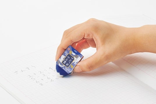 「富士山消しゴム」は、1989年に発売を開始したロングセラー消しゴム「エアイン」と同じ消しゴム樹脂を採用。多孔質セラミックスパウダーが無数のカドを生み出し、“いつもカドで消すような軽く快適な消し心地”を実現しています。