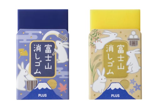 今回は、“お月見”をテーマに、消しゴムケースにうさぎや月をレイアウトした「夜富士」と「月富士」の2柄(2色)の富士山消しゴムを、お月見だんごに見立てた小箱に収めました。消しゴムの樹脂色は、秋の風情漂う新色の群青色と山吹色。インバウンド向けのプレゼントやお土産にもおすすめです。メーカー希望小売価格は638円(税込)です。