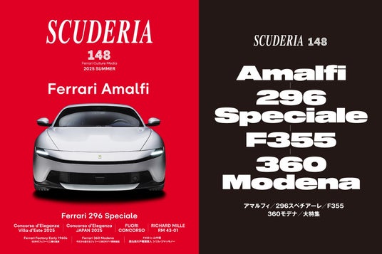 「アマルフィ」「296スペチアーレ」大特集! 人気の「F355」「360モデナ」秘話も! フェラーリ専門誌「スクーデリア 148号」7月31日(木)発売!