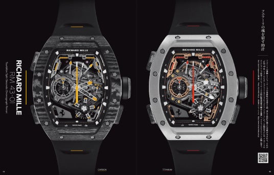 リシャール・ミルの新作機械式腕時計「RM 43-01トゥールビヨン スプリットセコンドクロノグラフ フェラーリ」を徹底紹介。フェラーリのエンジニアリング哲学とリシャール・ミルの時計製造技術が融合した、カーボンとチタンモデルのディテール迫る。