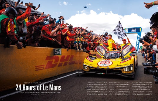 その他、1958年にフェラーリがモデナに初めて建設した組立ライン工場の様子を1960年代の希少な写真とともに解説。さらに、スペシャルマシンのラインナップに加わった「296スペチアーレ」の詳細、元ピニンファリーナのデザイントップが語る360モデナ開発秘話。F355オーナーに聞いた購入のきっかけやメンテナンス費用などなど、新型車、クラシケやイベント、実用的な情報などなど、通常号よりも24ページもの増ページで展開いたします。