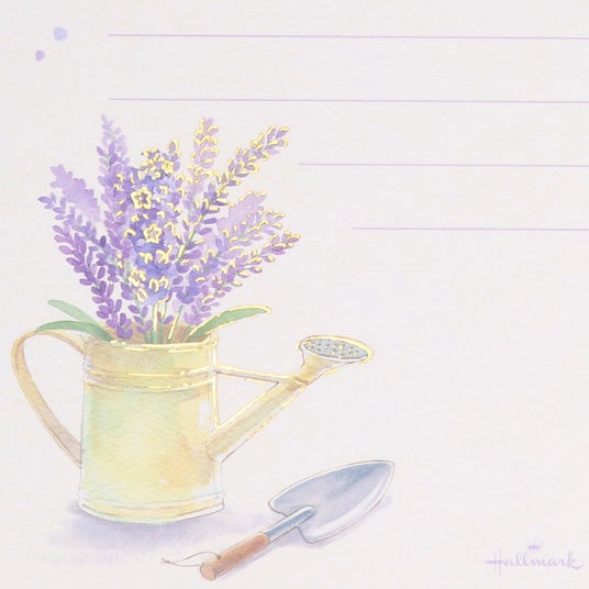 初夏シーズンのモチーフとして種類が増えつつあるラベンダー柄は、ジョウロやシャベルなどのガーデニング雑貨を描き、ナチュラルな暮らしをイメージさせるデザインに。水彩のふんわりとしたタッチで、ラベンダーの花弁を豊かに表現しました。