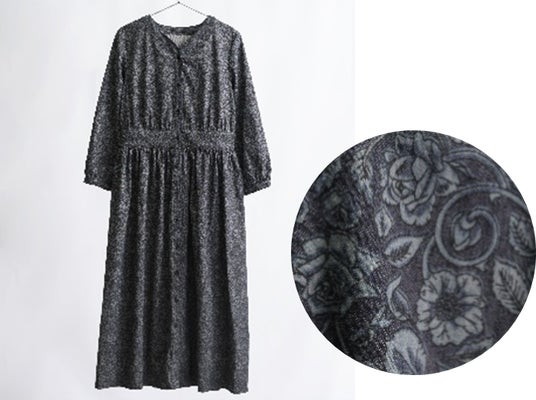 「松屋の地域共創」の取組みの一環として、広島県の「山陽染工(株)」が開発した「リバティプリントの抜染デニム」を全国に先駆け製品化。写真のトートバッグ、ワンピースなどを展開します。緻密に色を抜くことで細かな花柄を表現するリバティデニムは、高い技術力を必要とするため、実現できたのは「山陽染工(株)」が世界で初めてです。