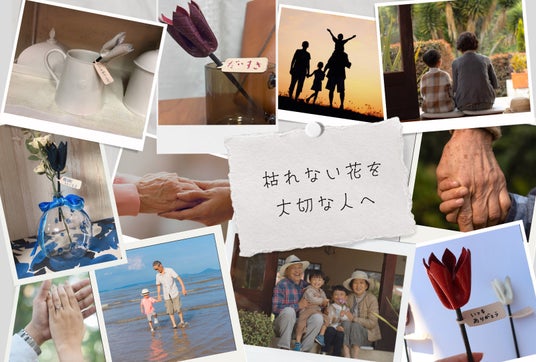 【ご予約開始】枯れない花を大切な人へ「革の花」賀寿祝いや記念日、母の日ギフトにも「いつまでも元気でいてほしい」願いを込めて、枯れない花を大切な人へ。