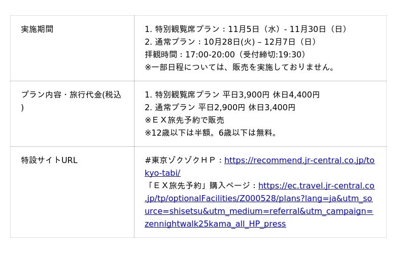 JR東海「#東京ゾクゾク」キャンペーンにて特別観覧席プランを販売