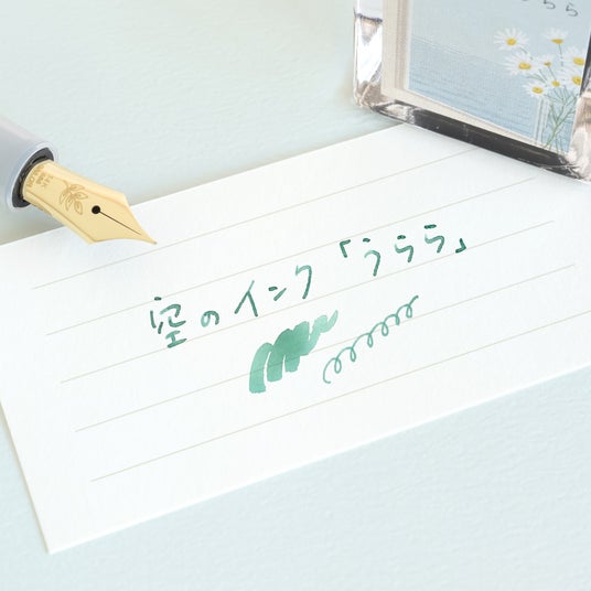 セーラー万年筆の『プロフェッショナルギアスリム』がベースとなります。のどかに晴れた穏やかな午後の空模様を表現した、柔らかな配色が特徴です。ペン先には、風にそよそよ揺れる葉をイメージした刻印入り。