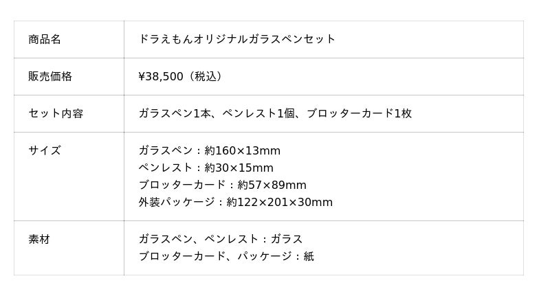 ドラえもんをモチーフにしたガラスペンセットがお誕生日の9月3日に予約開始!