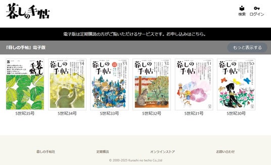 「暮しの手帖 電子版」は、隔月刊の総合生活雑誌「暮しの手帖」の紙の定期購読(1年分6冊)を暮しの手帖社オンラインストアでお申込みいただいた方だけに特典として提供されるサービスです。最新号はもちろん、過去1年分のバックナンバーも電子版で読み放題となっており、いつでもどこでも便利にご覧いただけるサービスを実現しました。