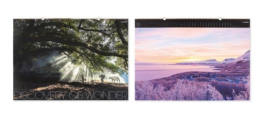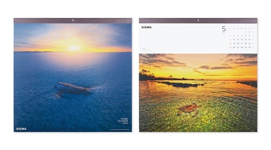 凍った水平線に昇る朝陽と流木の静謐感を捉えた作品で始まるカレンダー。シグマ社のカメラとレンズで撮影された“ユーザー・コンテンツ”による作品集です。印刷に使用する標準色CMYK(藍・紅・黄・黒)に銀のインキを加えた高意匠印刷により、自然風景の美しさを再現しています。