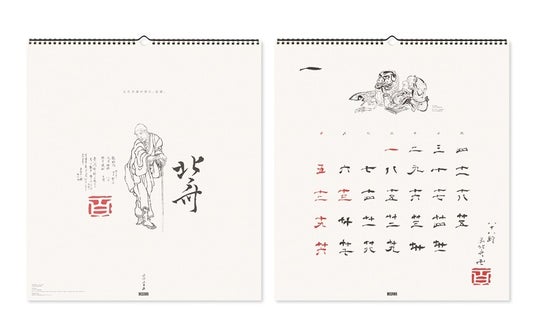 「人生百歳の世に、北斎。」というキャッチコピーのカレンダー。葛飾北斎の筆跡を主軸に、ドガ、モネ、クレーの作品が3ヵ月ごとに登場。多彩な編集が楽しく、新千円札にもある「神奈川沖浪裏」に代表される北斎の魅力を楽しめるインテリア性と機能性を兼ね備えた作品です。
