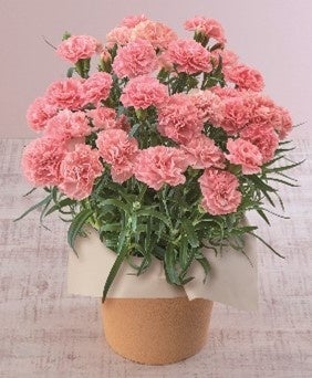 コーラルピンクの花色が大人かわいい印象の2024年新品種のカーネーションです。