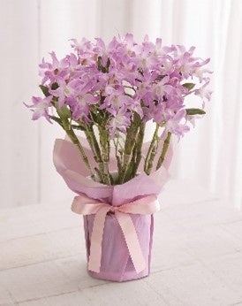 上品なピンク色の花が美しいデンドロビウム「桜蘭」。
