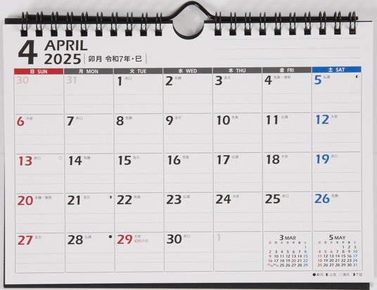 「4月始まりカレンダー」とは、「年度」の切り替えに便利な4月~翌年3月の期間を掲載したカレンダーのこと。