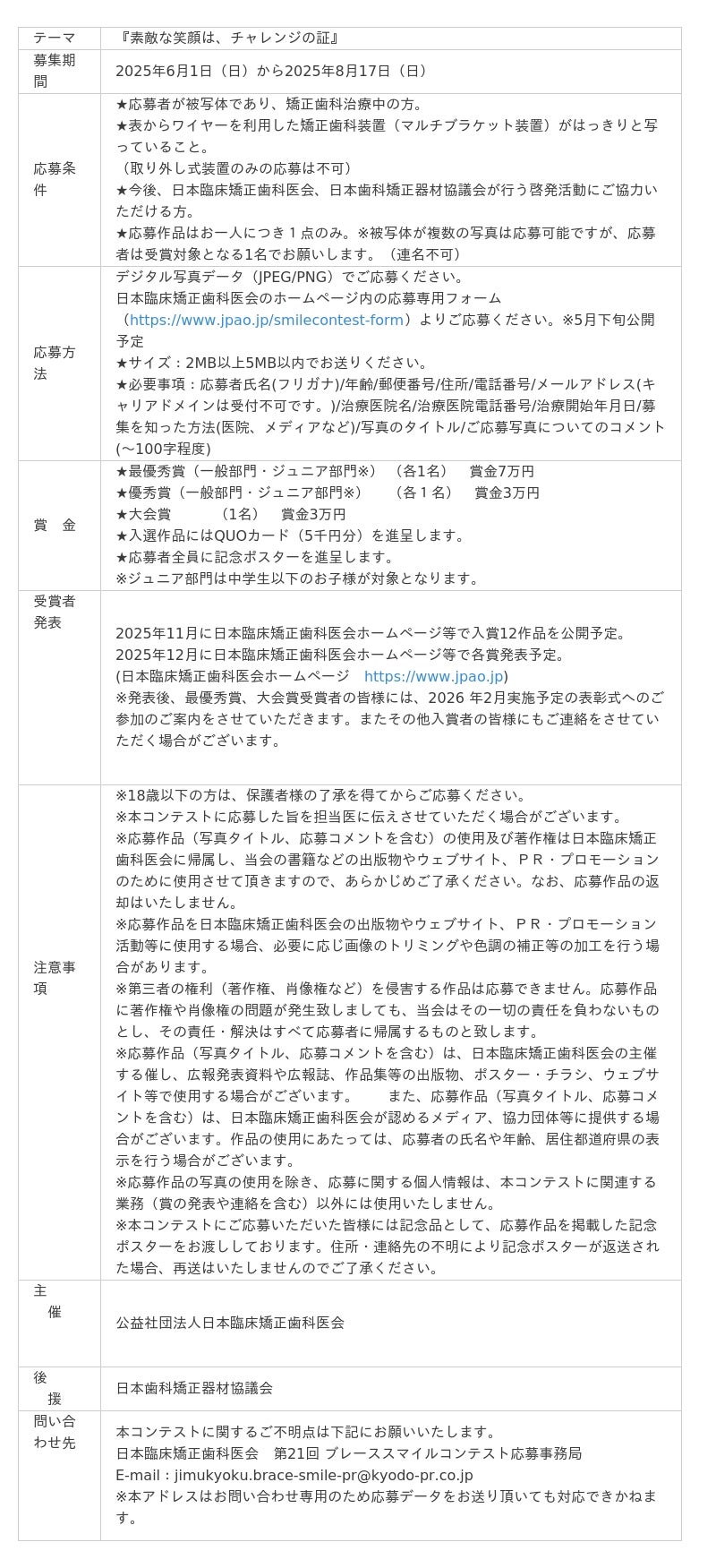 『第21回 ブレーススマイルコンテスト 募集要項』