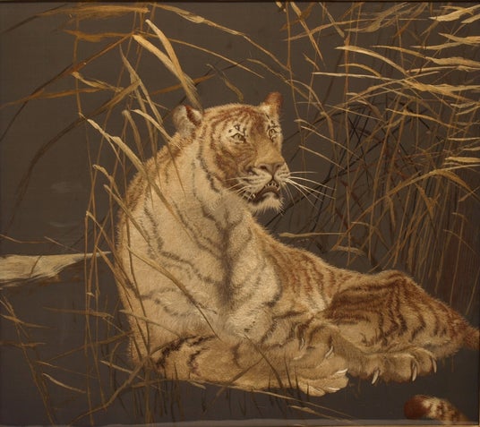 刺繍《蘆に虎図》 作者未詳 明治ー大正期 京都国立近代美術館蔵 【II部展示】 Photo:木村 羊一