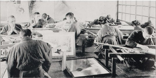 刺繍製作の様子 飯田新七(高島屋)刺繍工場 『京都府写真帖』 1908年 京都府編