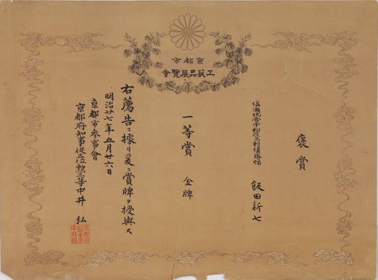 京都市工芸品展覧会一等賞金牌 1894年 高島屋史料館蔵 【III部展示】
