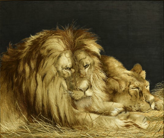刺繍《獅子図》 作者未詳 明治中期ー大正初期 高島屋史料館蔵 【I部展示】