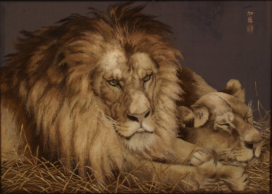 刺繍《獅子図》 刺繍:加藤 達之助 年未詳 清水三年坂美術館蔵 【I部展示】