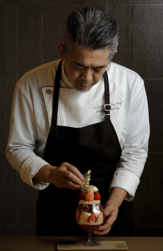関西のラグジュアリーホテルにて、約40年近い経験に培われた技術と溢れる感性で、独創的なスイーツを数々開発。菓子職人として、ディスプレイづくりもこなし、デコレーションや細工菓子のコンテストにて大阪府知事賞や最優秀賞などの受賞歴を持つ。開業直後から好評の季節の移ろいを反映した、和菓子に愛らしい洋菓子のアフタヌーンティーは、目にも楽しく、口福なひとときを届ける。