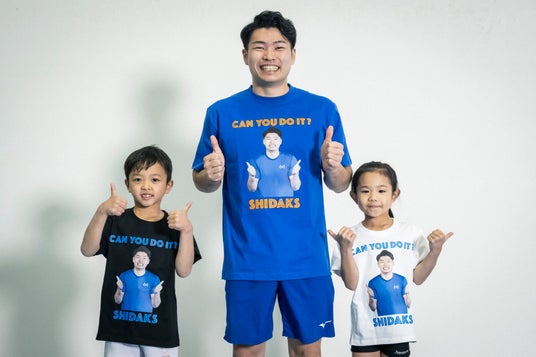 このTシャツを着ることで気分が上がったり、運動することが楽しくなってくれると、うれしいです。家族みんなで着て、本の中で紹介するトレーニング遊びを実践してみてください! 楽しくやれば、ぐんぐん上達すること間違いなしです! 僕のイベントにもTシャツを着て遊びにきてくださいね!