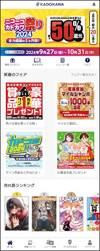 新着のフェア情報に加え、KADOKAWAの売れ筋書籍・雑誌ランキングもホーム画面に表示。話題の作品が一目で分かり、次に手に取るべき一冊との出会いが、より身近なものとなります。