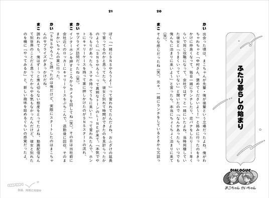 2023年12月、彼女と別れたまこちゃんが、同期のかいちゃんの家に転がり込んだことで始動。