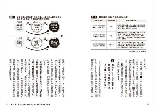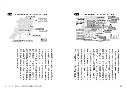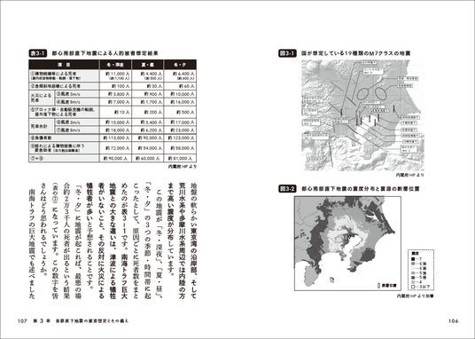 南海トラフ巨大地震・首都直下地震の発生確率や被害規模を具体的に示し、豊富な図や表とともにわかりやすく解説。