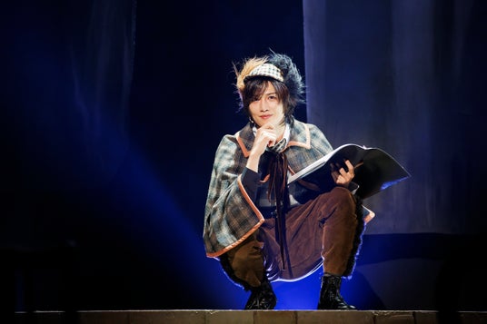 物語の主軸となるのは女と血が苦手な刑事・片山義太郎と片山家の飼い猫・ホームズ。片山を演じるのはミュージカル「刀剣乱舞」シリーズの鶴丸国永役で脚光を浴び、2024年のミュージカル『ロミオ&ジュリエット』ロミオ役など、活躍を続ける岡宮来夢。歌声や台詞に常に他人への思いやりが滲んでおり、優しい刑事の片山にぴったりの配役だ。