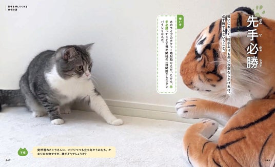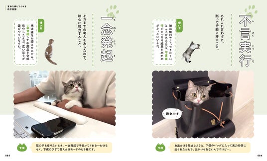 2匹の可愛らしい写真とともに、各表現の意味や使い方を解説しているので、楽しみながらことわざ、四字熟語を学ぶことができます。