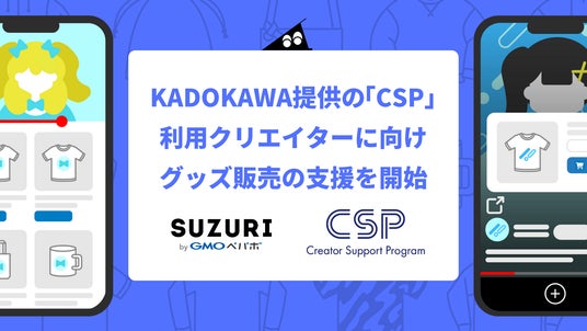 KADOKAWAの「CSP(クリエイターサポートプログラム)」が利用者へ「SUZURI byGMOペパボ」のグッズ販売支援を開始・無償サンプル提供やクリエイターマッチングでYouTubeでの活動を支援