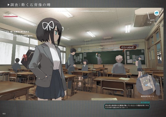 本書はイラストレーターのほし氏が描く、架空のゲームシーンを収録した新感覚の画集です。怪異がはびこる高校に生徒として潜入し、“遺失物”と呼ばれる怪異と戦うアクションRPGをテーマにしています。断片的なシーン作りから制作が始まりましたが、書籍の刊行にあたり、壮大なストーリーを作り上げました。