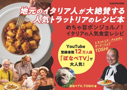 株式会社KADOKAWA(取締役 代表執行役社長 CEO:夏野剛、本社:東京都千代田区、以下KADOKAWA)は、2025年2月4日(火)に、ぼなぺTV、TOSHI著『めちゃ旨ボンジョルノ! イタリアの人気食堂レシピ』を発売します。
