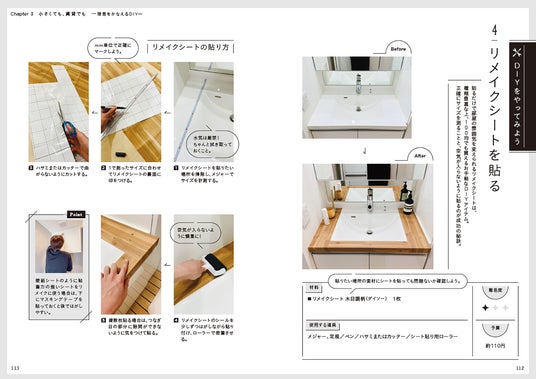 賃貸物件では必須の原状回復ができるDIYの方法もプロセス付きで解説。「賃貸だからDIYは無理」とあきらめていた人も、本書を読めば理想の部屋を叶えることができます。