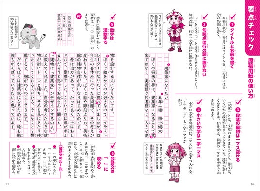 「要点チェック」ではまんがで学んだ作文のポイントを例文とともにわかりやすくまとめているので、書き方に迷ったときの参考になります。