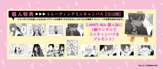 グッズのご購入金額が5,000円(税込)毎に、トレーディングミニキャンバス【全12種】をランダムで1つプレゼント!原作のコマがそのままキャンバスボードになって登場!