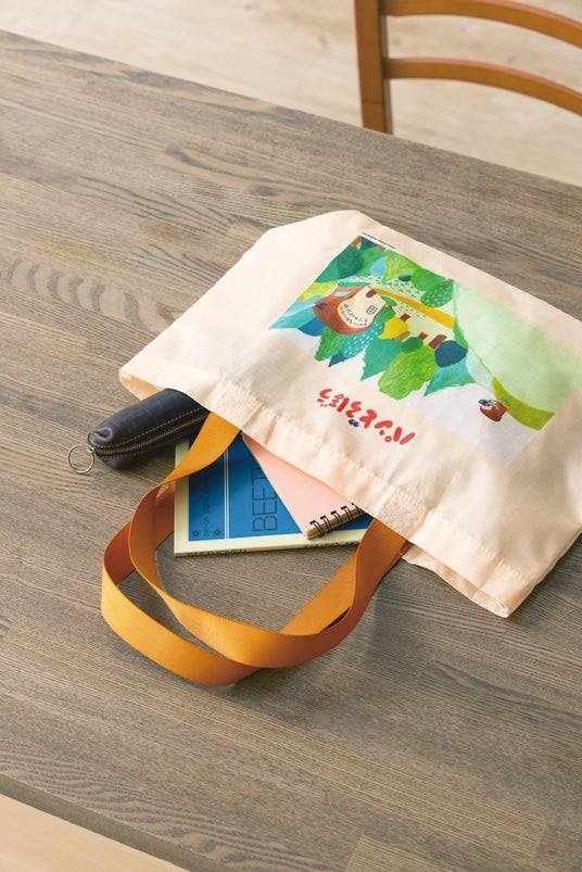 いつもは折り畳んで持ち歩き、買い物のときにはサッと取り出してエコバッグとして活用を。マチが13cmあるのでたっぷり入り、約5kgの重さまで対応します。持ち手が肩に掛けられる長さなのもうれしい!A4サイズがすっぽり入る大きさだから、お稽古や塾などのテキストを入れるのにも活躍します。大人も子どもも持ちたくなるバッグです。