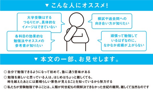 高校生の皆さんは、勉強しているときに思うように進まなかったり、すぐには成績が伸びなかったりと、不安になることも多いはず。そんな時は、本書をぜひ読んでみてください。あなたの悩みを解決するのに役立つ内容を本の中で発見できるはずです。この本を読んでいただいた皆さんが「自学の土台」を作れることを願っています。