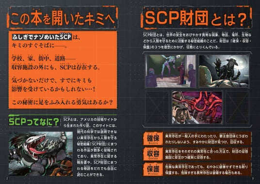 「SCP」の世界に登場する用語や職員などを分かりやすく説明しているため、「SCP」ファンの方はもちろん、「SCP」に興味を持ち始めた方にもぴったりの1冊です。