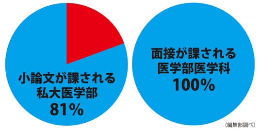 ここで、まず押さえておきたいことが、8割を超える私立大学の医学部入試で小論文が、国公立も含むすべての医学部医学科で面接試験が課されるということです。そして、学科で高得点を取っても小論文・面接を通ることができずに涙を呑む受験生が少なくありません。