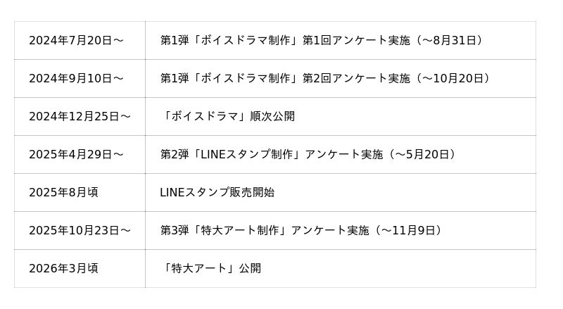 今回は「特大アート」の制作です。皆様から寄せられたご意見を元に、イラストレーター・桑島黎音先生が特大アートを描き下ろします。下記アンケートフォームにてご回答を受け付けておりますので、ぜひご参加ください!