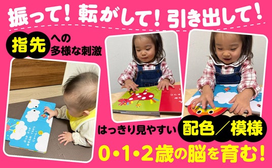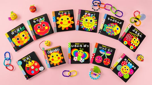 赤ちゃんの目を通して心と脳を育むSassyのグラフィックに、赤ちゃんが大好きなオノマトペを組み合わせた、0歳の誕生日から楽しめる絵本シリーズ!
