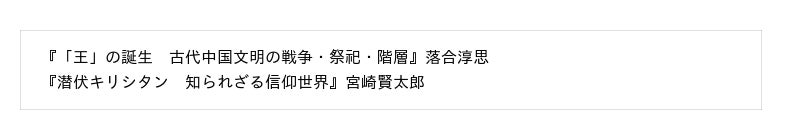 戦乱・信仰・文字が「権力」を生んだ――知られざる中華帝国の始原『「王」の誕生 古代中国文明の戦争・祭祀・階層』(落合淳思)、ゼ十ス様、丸や様とはだれか? 通説を覆すおどろきの信仰世界を明らかにする『潜伏キリシタン 知られざる信仰世界』(宮崎賢太郎)が登場! ぜひこの機会にお手に取りください。