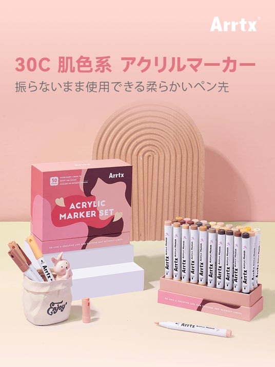 Arrtxは肌色系アクリルマーカー30本セットをリリースいたしました。この商品はPantongカラーカードを比較して、世界中のユーザーのニーズを調査し、150以上の色番号から最も人気のあるトップ30の肌色を選択します。人気のある柔らかい繊維ペンの後継品としてこの肌色系30本セットは人物スライトに最適です。