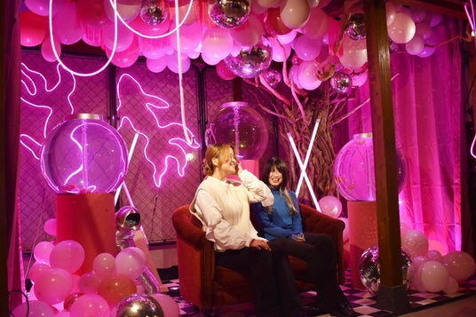 桜の木に咲く花に模した風船と、ミラーボールが幻想的な雰囲気を作り、近代アートのような空間から春の訪れを感じる新感覚のフォトスポットとなっております。