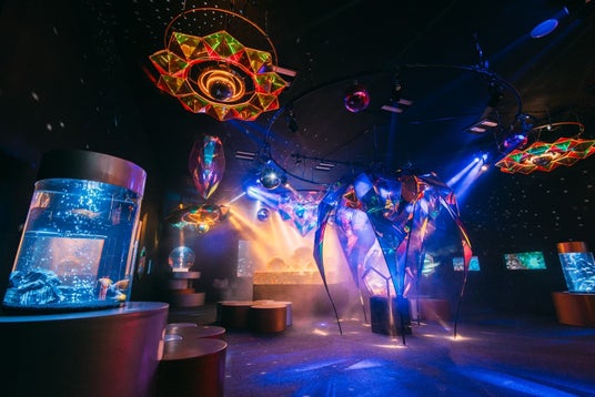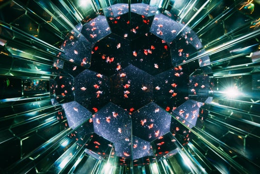 アート集団「ミラーボーラーズ」とのコラボレーションによる、五感を刺激するメインアートワーク。沖縄金魚ミュージアムでしか体感できない異空間ディスコです。
