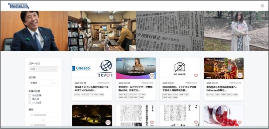 「MediaLink」に参加するメディア企業が投稿する記事や広告などのコンテンツが新着順にサイトに掲載され、検索することが可能です。あわせてメールマガジンで新着情報を参加企業に通知します。