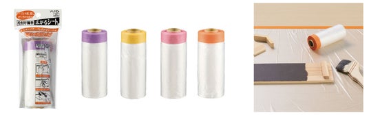 「片付け簡単広がるシート」は、マスキングテープと折りたたまれた養生シートが一体になった汚れ防止専用シートです。事前に汚れから保護したいテーブルや床、壁などにマスキングテープでシートを固定し、シートを広げることで汚れから守ります。主な用途として、お子様のお絵描きや工作、DIY作業での汚れ防止、お子様の食べこぼしや散髪時などの家庭での利用の他、外出時は車内などでのおむつ替えやペットの抜け毛などによる汚れ防止、キャンプなどのレジャーシーン等様々な場面で活躍します。これまでは新聞紙を敷き詰めたり、レジャーシートを準備したりしていた手間が、これ1コで完結します。その上、日常使いに最適な粘着力とサイズ感に加え、シートは表面処理を施すことでひらひらせず床などに吸着するので作業がしやすく、使用後は丸めて捨てられる手軽さも便利な点です。本来この製品は「マスカー」と呼ばれ、主に建築塗装の現場で壁や床を保護するために使われる道具ですが、一般的にサイズが大きく、中には粘着力の強いものもあり、家庭で使うにはハードルが高いものでした。そこで、利便性をそのままに、日常で使いやすく、一般家庭に最適なサイズ感と、家具を傷めにくい粘着力のテープを組み合わせて製品化いたしました。
